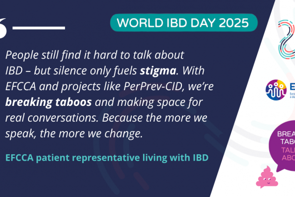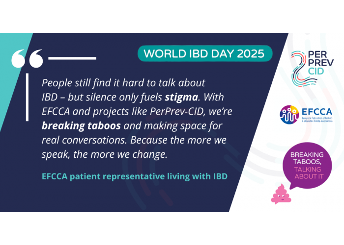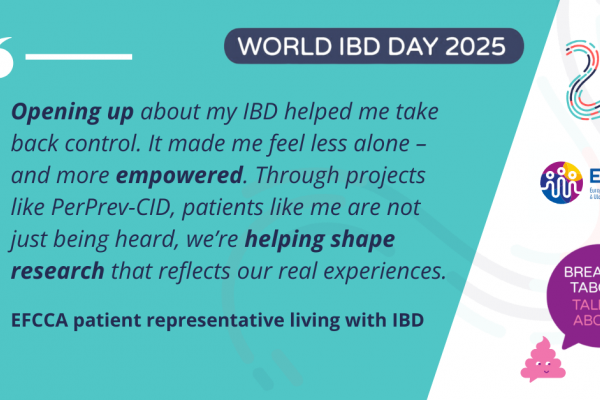 With the support of our partner, the European Federation of Crohn’s and Ulcerative Colitis Associations (EFCCA), which coordinated World IBD Day, people living with IBD are not only represented but actively engaged in the research process. Their insights help us shape better studies, develop more relevant materials, and focus on what truly matters in real life. As part of this year’s awareness efforts, EFCCA patient representatives shared their personal reflections on the power of speaking openly about IBD with PerPrev-CID. Many expressed how being honest about their condition helped them feel more empowered, less alone, and more in control of their lives – a strong reminder of why open conversations are so vital. Explore some highlights of our activities and messages below.